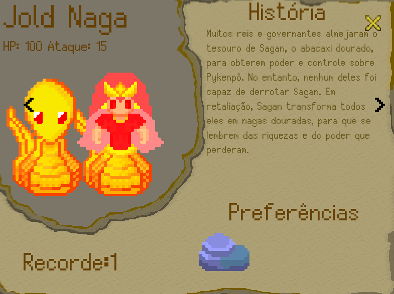 Desafie criaturas estranhas em jogos de pedra, papel e tesoura em uma caverna cheia de criaturas fantásticas e perigosas com o objetivo final de adquirir o grande Abacaxi Dourado Perdido.